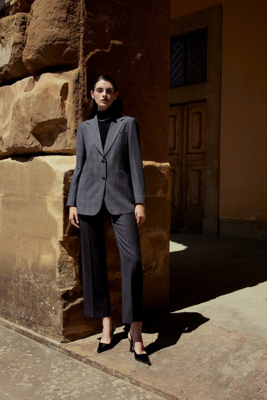 We offer a curated selection of the finest fabrics from renowned global makers such as Guabello 1815, Holland & Sherry, Lanificio Cerruti, Drago, Canclini, Dugdale Bros, Ariston, Dormeuil, Loro Piana, Solbiati, Porter and Harding, and Harrisons of Edinburgh, along with our in-house fabrics. Our range focuses on natural fibres, including wool, cashmere, cotton, linen, and mohair.